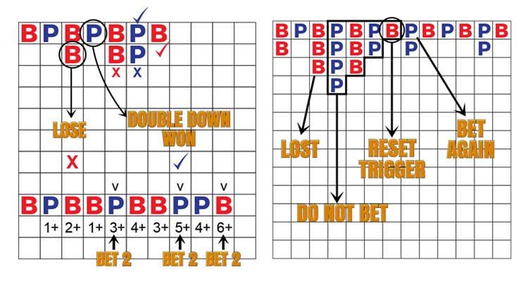 เทคนิคนี้ในตอนแรกให้คุณรอสังเกตการณ์ออกไพ่ก่อนอย่าเพิ่งวางเงิน ดูว่าไพ่ออกมาในลักษณะ Banker/Player สลับกันไปมา 3 ครั้ง คุณก็คาดการณ์ได้เลยเข้าสูตรไพ่ปิงปอง คุณก็เริ่มแทงสลับตามได้เลย