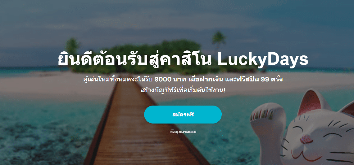 LuckyDays คาสิโนออนไลน์ โบนัสฝากเงินสูงสุด 9000 บาท พร้อมฟรีสบิน